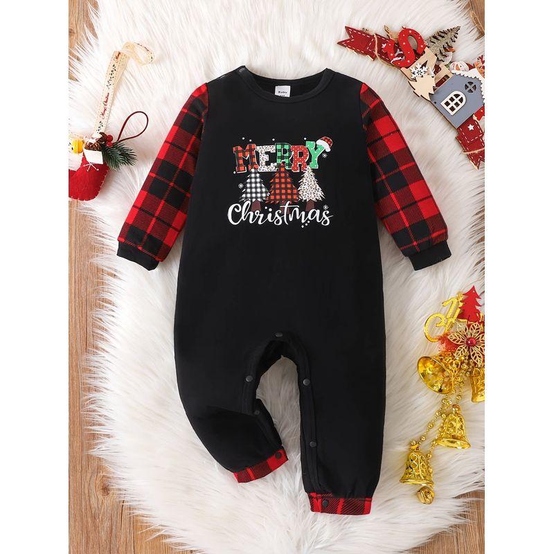 Foreign Trade Ins Newborn Baby Boys and Girls Letter Print Christmas Plaid Long-Sleeve Open-Crotch Romper — günstig online bei Joom kaufen