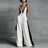2026 Black & White Color Block Women's Deep V-Neck Jumpsuit with Thin Straps — günstig online bei Joom kaufen