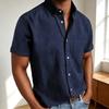 Sommer Neues Herren Kurzarmhemd Mode Lässig Locker Bequem Einfarbig Strickjacke Revers Strand Herren Kurzarmhemd