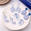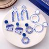 Vintage Blaue Und Weiße Porzellanohrringe Chinesischer Stil Wellenpunkt Elegante Geometrische Ohrringe Damen Ohrschmuck