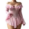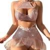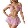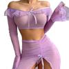 Transparent Mesh Uniform Temptation High Slit Long Skirt Erotic Lingerie Set Underwear