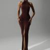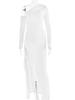 Neue High Split Maxi Einteiliges Kleid Frauen Langarm Backless Sexy Club Party Langes Kleid Dame Solide Mode Geraffte patchwork Kleider