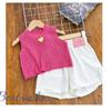 Fashionable 2024 Summer Girls Knit Ensemble With Elegant Dragon Fruit Top And Shorts