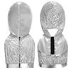 Sparkling Sequins Hip-Hop Jazz Top: Sleeveless Backless Hooded Crop Top with Front Zipper for Stage Dance Costume