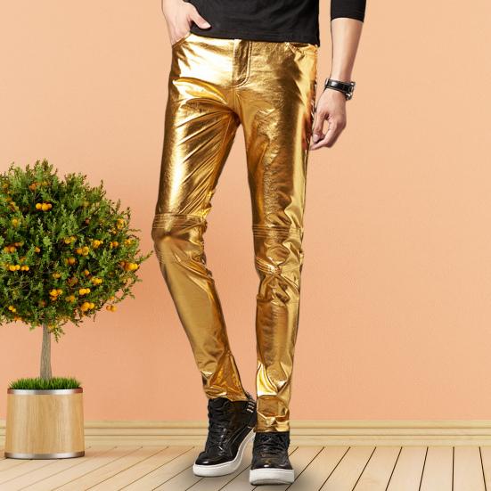 Mit seiner glänzenden Oberfläche ist diese Hose sehr cool, modisch und beliebt, sie lässt Sie cooler und gutaussehender aussehen.
