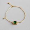 Gold Plated Double Layer Bracelet with Square Green Zircon, Vintage Emerald Charm Chain for Women, Dainty Elegant Daily Jewelry