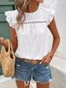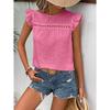 2026 Women's Summer New Round Neck Lace Solid Color Ruffle Short Sleeve Top
