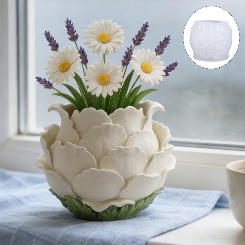 3D Pfingstrosenblütenförmige Töpfe Silikonform, DIY Light Luxury Stil Blumentopf Zum Erstellen Einer Romantischen Ecke Für Ihren Schreibtisch
