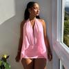 New Women's Mesh Cowl Neck Backless A-line Swing Long Sleeve Dress, European American Casual Party Dress