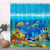 Ocean Duschvorhang Blau Duschvorhänge für Badezimmer Meerestier Polyester Unterwasserlandschaft Badezimmervorhang Set mit Haken