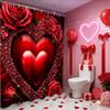 Valentine's Day Love Heart Rose shower curtain, bathroom shower waterproof curtain with 12 hooks, fish shaped home decoration