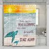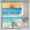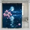 Full Moon Orchid On The Sea Landscape Shower Curtain Set Butterfly Marine Beach Turtle Wooden Board Background Bathroom Curtain