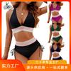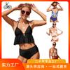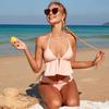 New swimsuit plus size women's sexy halter strap-up bikini split ruffle edge high waist swimsuit