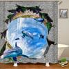 Cartoon Dolphin Shower Curtain Waterproof Home Decoration Curtain Ocean Sea Beach landscape Printed Bathroom Curtain With Hooks