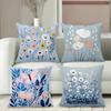 Blue Floral Patterned Cushion Covers With Cottage Scenes Polyester pillowcase, sofa decorative cushion cov Headboard Pillow