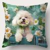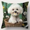 Cute White Dogs with Daisy Patterned Throw Pillows Polyester pillowcase, sofa decorative cushion cov Headboard Pillow