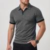 Herren Sport Freizeit -farbig Kragen-gestreiftes T-Shirt - Herren American- Kragen Kurzarmhemd