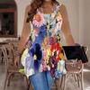 Modische lässige Sport-Doppelring-Weste für Damen, Große Tank-Weste mit Retro-Druckmustern, Unregelmäßiger Saum, Elegant und Schlicht