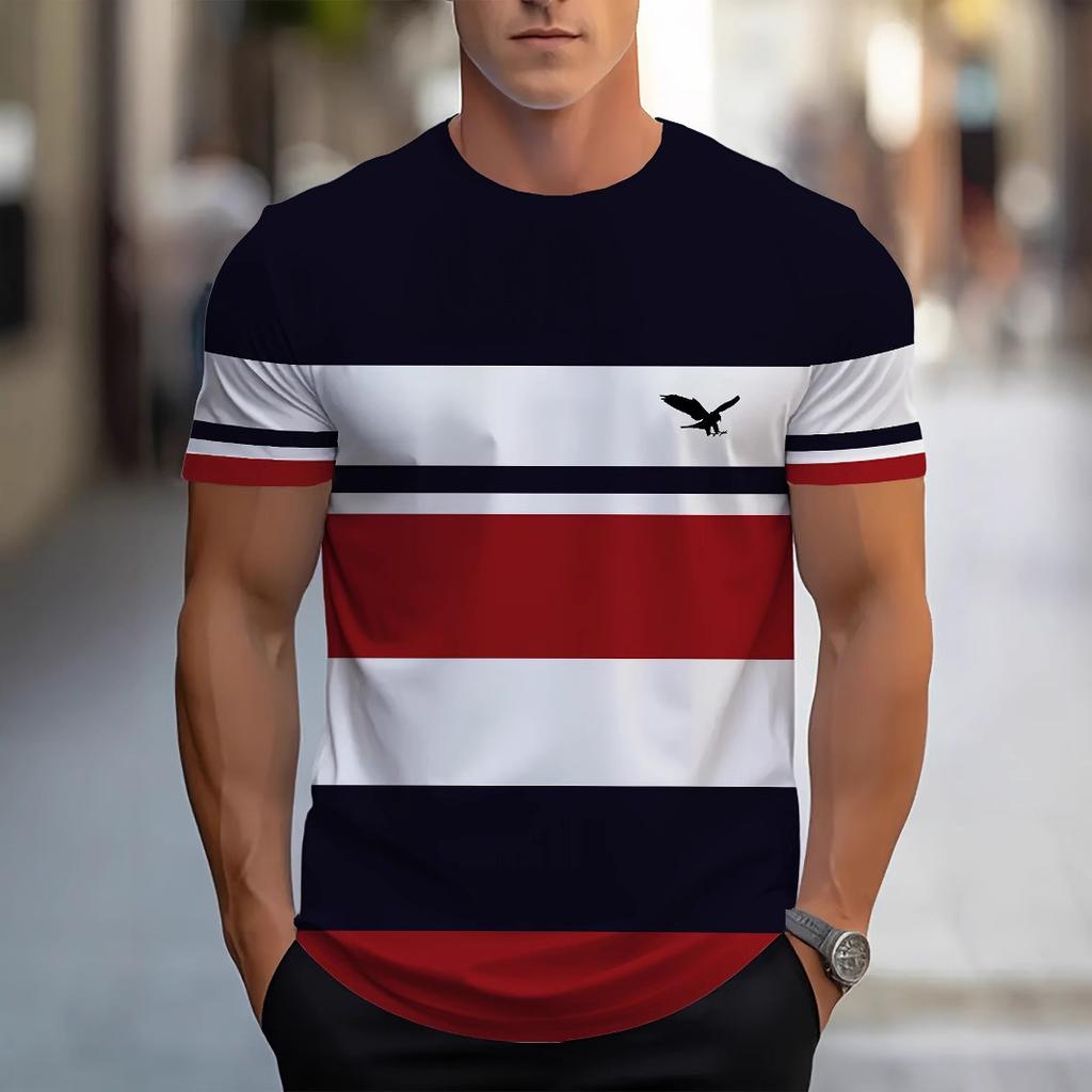 3D digital printed color striped men's casual and comfortable loose men's short sleeved shirt