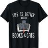 Das Leben ist besser mit Katzen und Büchern Lesen Hobbys Herren T-Shirt Damen Grafik
