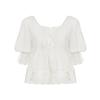 Pure Desire Style Lace Splicing V-Neck White Shirt Top 2026 Spring and Summer New Style Bow Tie Casual T-Shirt for Women