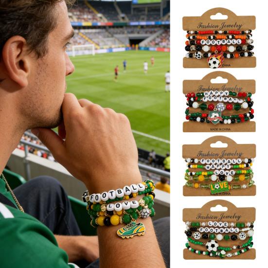 Fußballfan Perlenarmband Set mit Fußballschuh Buchstaben Anhängern Mehrschichtiges Stapelarmband für die Weltmeisterschaft 2026-Thema Unterstützer Sport Schmuck