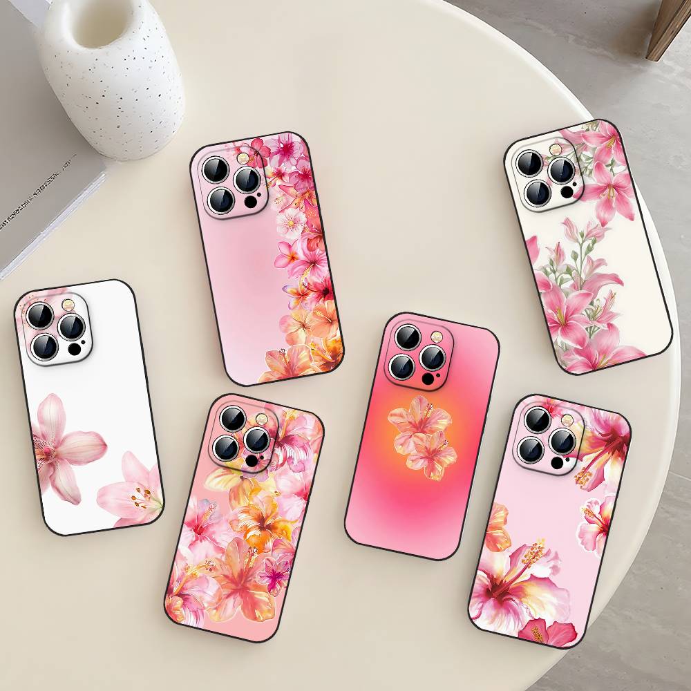 P-Peach-B-Blossom Black Phone Case That Fits For IPhone 17,16,15,11,13,14 Pro Max,Plus,X,Xr,Xs Max,13Mini
