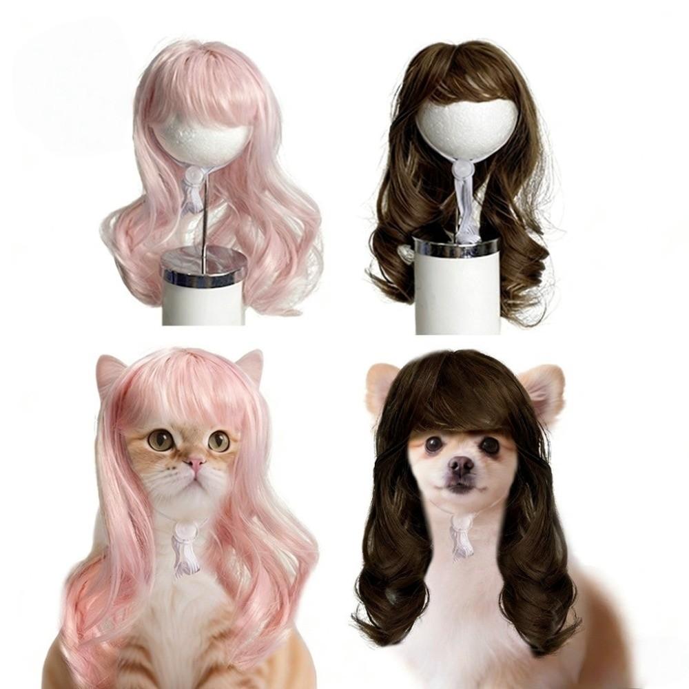 Verstellbare Passform Haustier Bob Perücke Bequem zu tragen Katze Falsches Haar Kätzchen Gewelltes Haar Party Spiel Kostüm