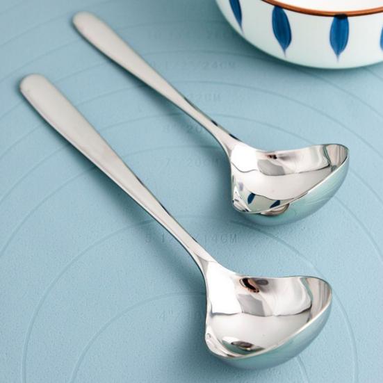 Hochwertige Edelstahlkonstruktion: Gefertigt aus hochwertigem Edelstahl, verfügt dieser Löffel mit glattem Griff über eine glatte, glänzende Oberfläche, die korrosionsbeständig ist und eine lange Haltbarkeit gewährleistet.. Sein robustes Material hält dem täglichen Gebrauch stand, ohne sich zu verbiegen oder zu rosten, was es zu einer idealen Wahl für das tägliche Essen und die Zubereitung von Speisen macht.