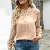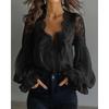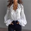 Frühling Lace-up Langarm Bluse Mode V-ausschnitt Sexy Shirts Büro Dame Frauen Kleidung Elegante Spitze Frauen Hohl Tops 24664