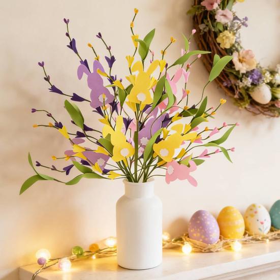 Ideal für Esstische, Eingänge, Fensterbänke, Vitrinen und Osterpartys, es kann allein oder zu Sträußen kombiniert werden, um verschiedenen Dekorationsstilen zu entsprechen.. Über Ostern hinaus ist es großartig für Frühlingspicknicks, Kinderzimmer, Foto-Requisiten und Verzierungen für Geschenkboxen – und bietet Jahr für Jahr sowohl praktische als auch dekorative Vorteile.