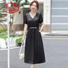 XUEXI Elegant Summer Slimming Short-Sleeve Midi Dress
