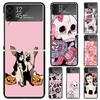 Halloween Herbst Kunst Hexe Katze Handyhülle Für Samsung Z Flip 7 6 5G Galaxy Z Flip4 Z Flip5 Z Flip3 Hülle Schwarze Harte PC Schale Prote