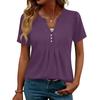 Damen Oberteile Festlich Lässig V-Ausschnitt Kurzarm Hemden Plissierte Blusen Knopfleiste Tunika