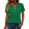 Damen Oberteile Festlich Lässig V-Ausschnitt Kurzarm Hemden Plissierte Blusen Knopfleiste Tunika — günstig online bei Joom kaufen