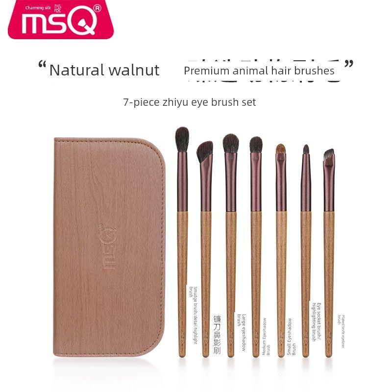 Msq/Meisika 7-Piece Eye Shadow Brush Set for Eye Blending and Coloring, Sickle-Shaped Nose Shadow Brush, Makeup Brush, Wool