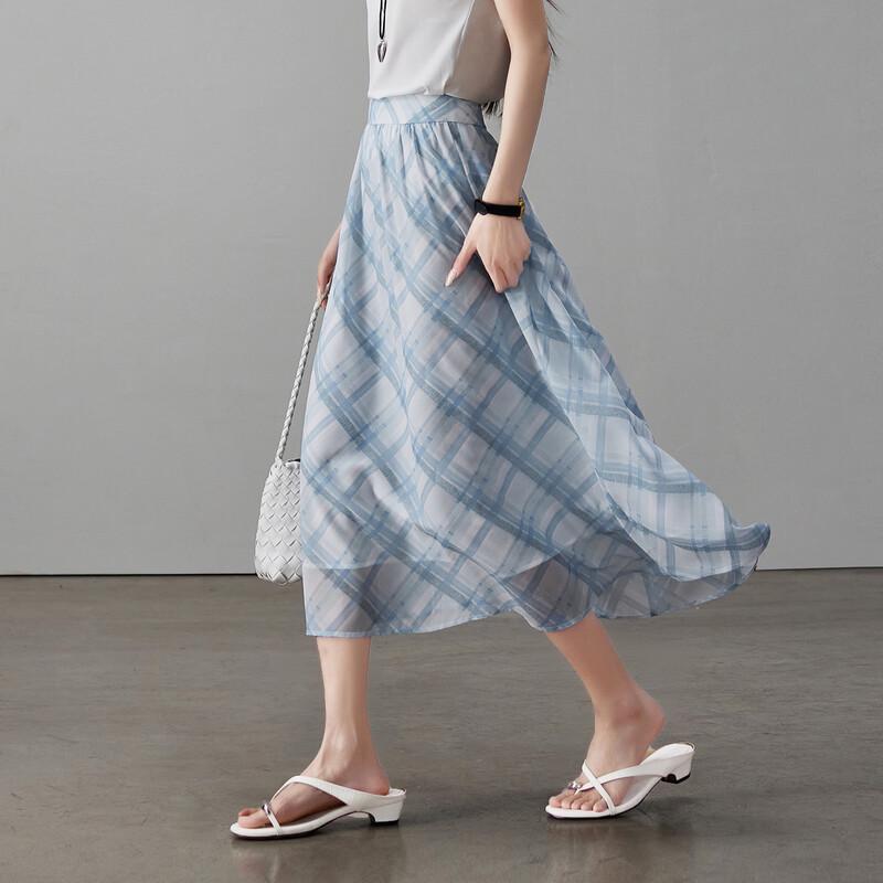 SOFSIL Damen High-Waist karierter A-Linien-Midirock