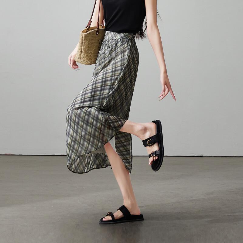 SOFSIL Women's Retro Plaid High-Waisted A-Line Skirt
