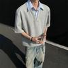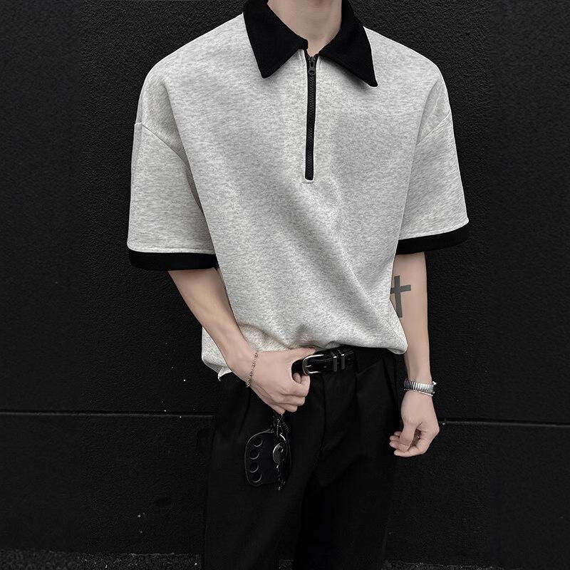 Men Half Zip Color Block Oversized Short Sleeve Polo Shirt Casual Loose Breathable Streetwear Summer Top