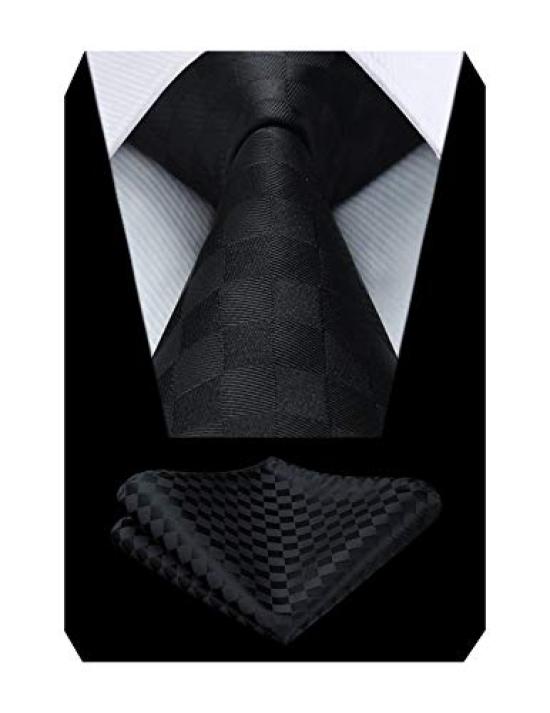 [Enlision] Formal Black Tie and Pocket Square Set for Men, Silk, Check Pattern, Business, Party, Ceremonial Occasions, Luxury Gift TC311L8S By