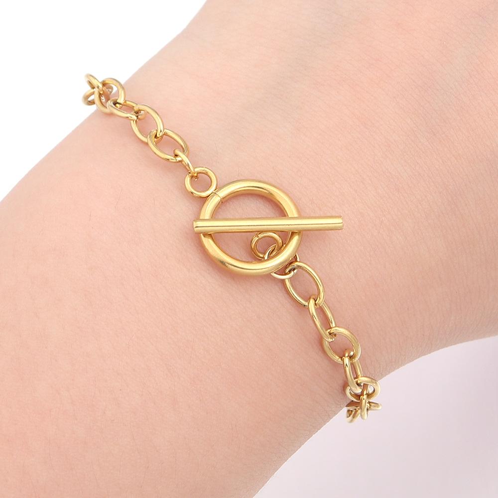 2pcs/lot Gold Color Stainless Steel Round OT Clasps Chain Bracelets For DIY Men Women Fashion Bracelets Jewelry Gift Accessories
