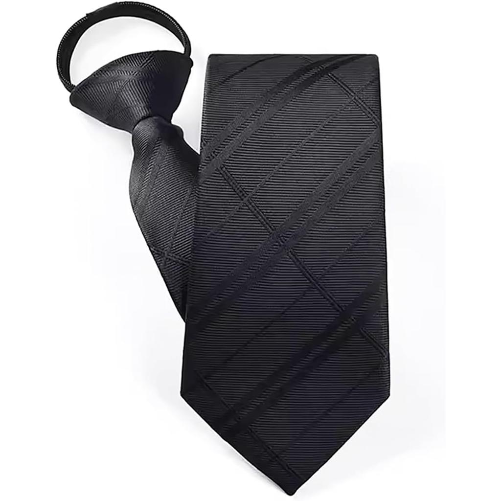 [Love Room] Luxuriöse Ein-Klick-Herren-Business-Krawatte, Reißverschluss-Typ Einfache Krawatte, 5-Sekunden-Anbringung, Markenname, Waschbar, Karomuster-Streifen, Blau, Grau, Schwarz,