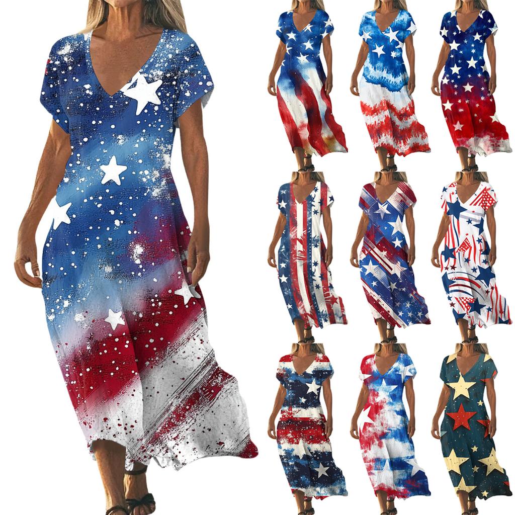 Sommerkleid Damen Lang Strandkleid Elegantes Kleid V-Ausschnitt Kurzarm Sommerkleid Leicht Luftig — günstig online bei Joom kaufen