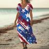Sommerkleid Damen Lang Strandkleid Elegantes Kleid V-Ausschnitt Kurzarm Sommerkleid Leicht Luftig