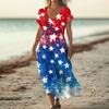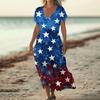 Sommerkleid Damen Lang Strandkleid Elegantes Kleid V-Ausschnitt Kurzarm Sommerkleid Leicht Luftig — günstig online bei Joom kaufen