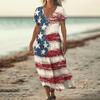 Sommerkleid Damen Lang Strandkleid Elegantes Kleid V-Ausschnitt Kurzarm Sommerkleid Leicht Luftig