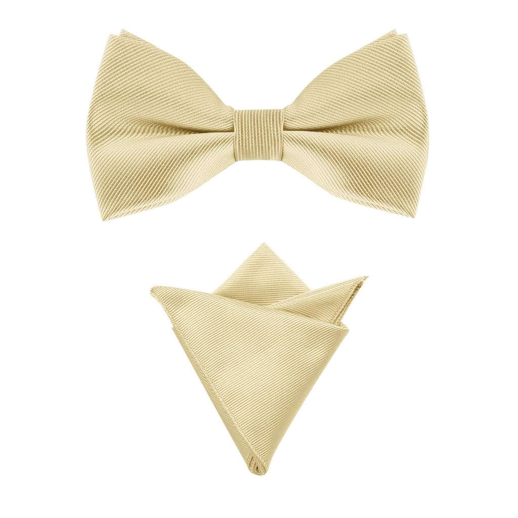 [Allegra K] Bow Tie & Pocket Square 2-Piece Set, Solid Color, for Weddings and Parties, Men's, Champagne, Free Size