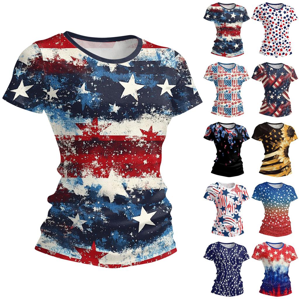 Damenmode Rundhals Unabhängigkeitstag Druck Kurzarm Locker Rundhals T-Shirt Top — günstig online bei Joom kaufen
