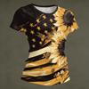 Damenmode Rundhals Unabhängigkeitstag Druck Kurzarm Locker Rundhals T-Shirt Top