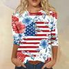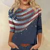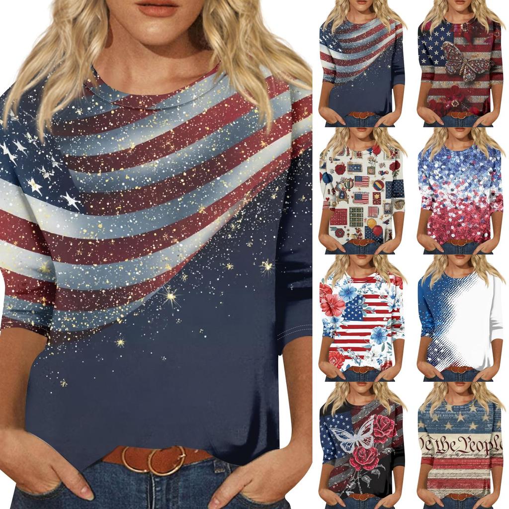 Damenmode Lässiges Oberteil mit Sieben-Viertel-Ärmeln, Unabhängigkeitstag-Print, Rundhalsausschnitt — günstig online bei Joom kaufen